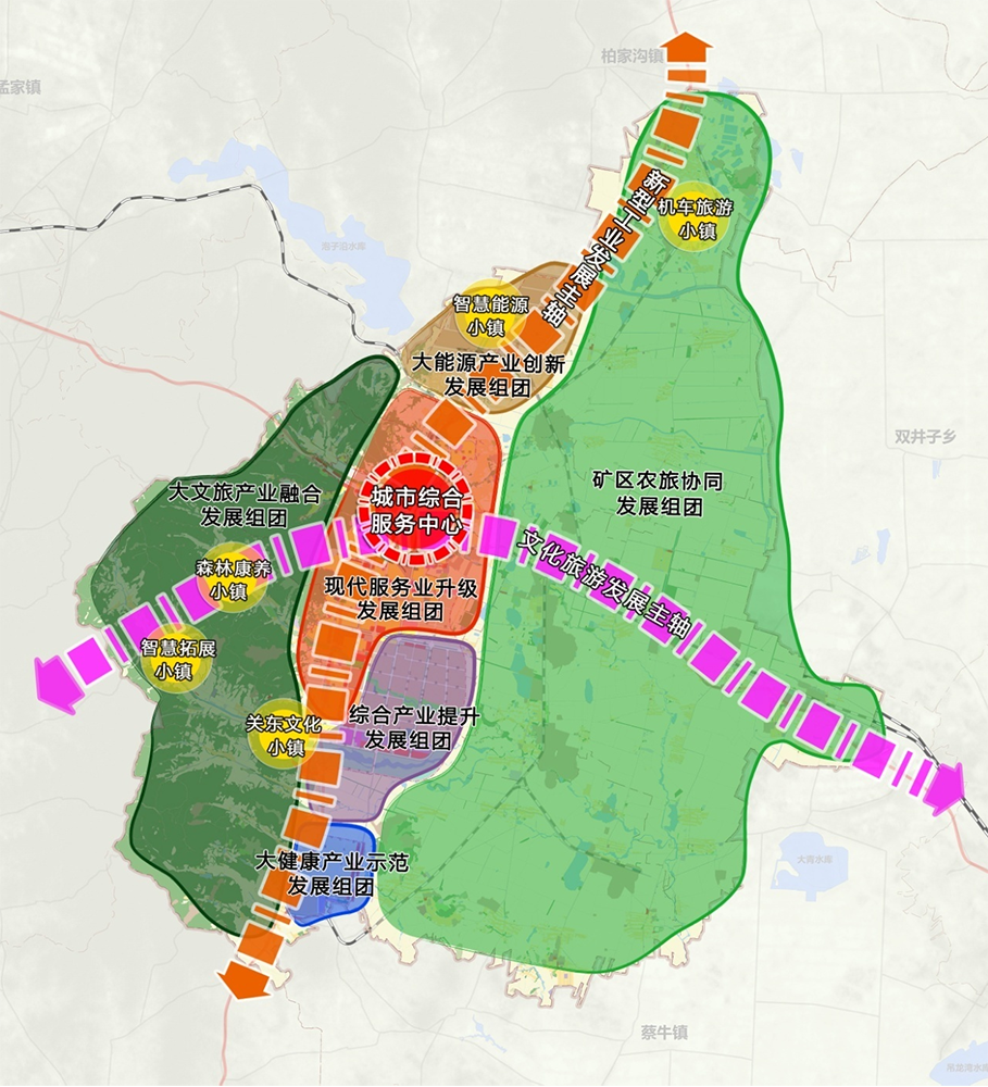 调兵山市位于辽宁省北部,是一座因煤而建、依煤而兴的资源型城市,产业发展单一,发展后劲不足,产业转型升级迫在眉睫。本次规划结合国家新一轮振兴东北战略及沈铁一体化发展趋势,立足于前瞻视野,将调兵山发展战略定位为资源型城市高质量发展的“全国样本”、全国能源开发与创新示范城市、世界级的机车主题文化旅游城市、辽北地区生态健康标杆城市。立足现有产业基础、资源优势及未来市场需求,引领发展大能源、大健康、大文旅三大新兴产业,提升发展特色智能装备制造、特色新型材料、精品农业三项有基础优势的特色产业,着力构建 “三大两特一精”产业体系,为调兵山在新一轮跨越式转型发展提供保障。
