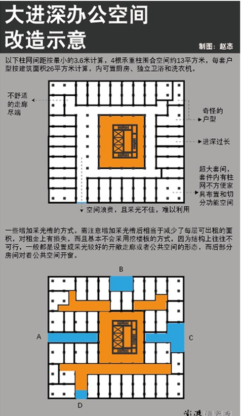 如果后两者的进深过宽,超过了居住的合理尺度,则应视同超高层建筑的改造问题。后文会详细论述。