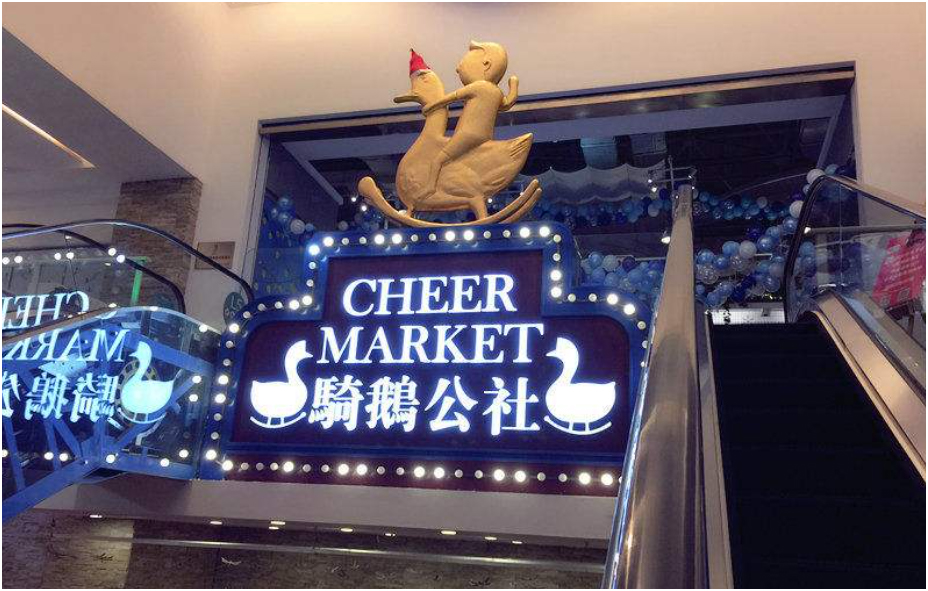 而“骑鹅公社”却锁定文艺青年,以奇幻、冒险、旅行和自我成长为主题,所以用集装箱做店铺。品牌也是整合了各地原创品牌,例如,原创手工艺品、台湾小吃、纸艺、音乐主题咖啡店。无论是内装风格店铺设计,还是品牌都吻合文艺青年们追求潮流创意,前沿个性的心理。