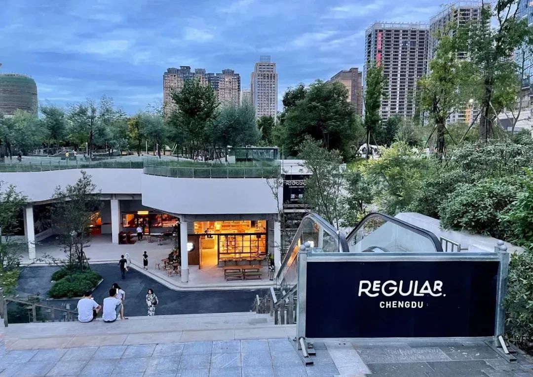 于2021年7月开放运营的Regular 源野位于成都高新区大源中央公园负一层,紧邻地铁5号线大源站。项目商业区域总面积6528.72平方米(不含户外花园),层高约5.5米。不同于传统的商业风格,Regular里空间大量运用清水混凝土,与露天空间保持着原始风貌的水泥承重梁柱呼应。场内多处设计保留了自然采光,将光导入黑暗的建筑背面。