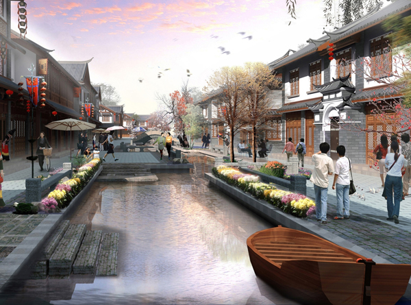 文化旅游集聚区位于中山市小榄镇的旧城区,菊花和书画文化底蕴深厚,千年水色匝环绕城区。区内有大量历史文物古迹遗存,文化创意产业已具雏形。但旧城区产业空洞化、建筑老化等现象,严重制约着本项目所在旧城区的发展。为此,我们试图探索一种旧城改造和城镇再发展、历史保护和创意文化相结合的发展模式。通过现状判读及成功案例借鉴,我们将集聚区的形象定位为“水色菊苑,墨香老坊”,重点发展创意和休闲旅游业,配套发展商务休闲、特色商业等产业。空间上,集聚区呈现“一心三街,五区八巷”的结构,其中五区指原生态艺术创作交易区、岭南市井风貌区、历史文化观光旅游区、水岸商务休闲区、亲子休闲与艺术培训区。此外,我们还设计了中心广场民俗风情景观核、水岸商务休闲会所群、菊花特色主题酒店、原生态文化艺术基地等核心项目。按照我们的思路,本项目将建设成为原生态文化艺术体验街区、珠三角文化经济创新发展试验田、广东省“三旧”改造示范基地。