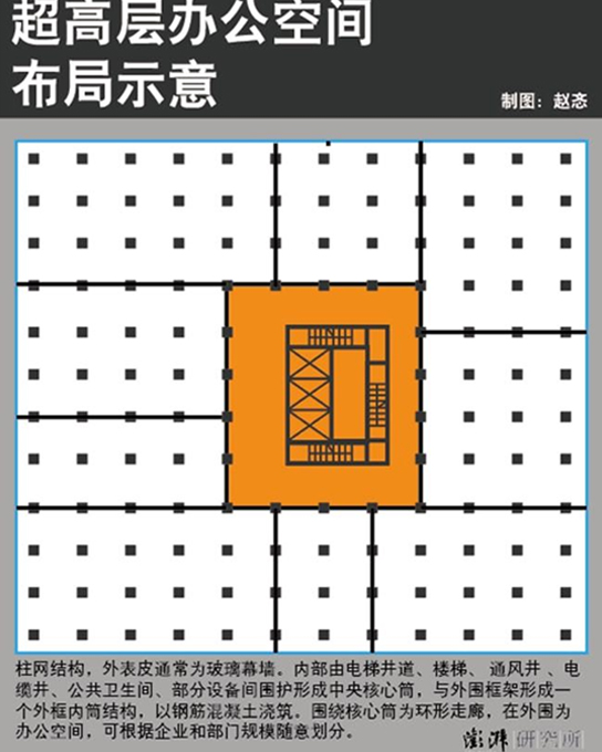 第二类商办建筑是2000年代前后兴起的,柱网结构、占地面积超大、玻璃幕墙式的超高办公楼,其中的工作空间可以任意划分,对人数多的企业更为友好,也方便地产商对办公空间的出租。它的源头在于1960-1970年代欧美激进建筑师们对于“城市巨构”的各种想象,落实在真实的城市中,则以“高技派”的实践为理论基础。