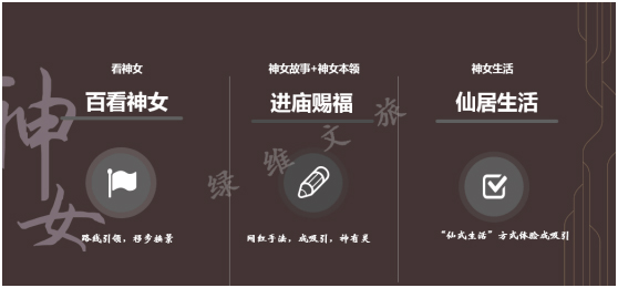 绿维文旅创新院整合神女庙、神女峰、巫山云雨、诗词文化等神女文化和神女资源,站在旅游目的地构建视角,在产品吸引力、业态结构、游憩方式、动线联通、经营等层面全力提升,立足巫山云雨之景,升华神女爱情,将神女景区打造为集观光、休闲、祈福、休闲娱乐、亲子度假等为一体,全方位、立体化、综合型的景区。