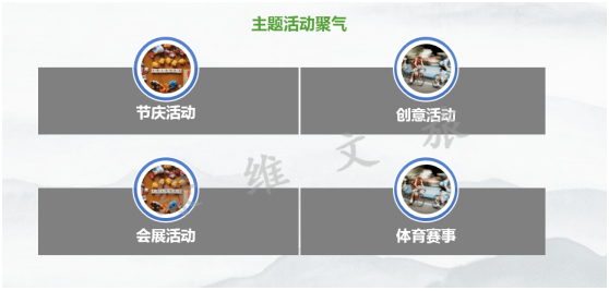 通过活动,可聚客引流,大幅引爆市场增量。绿维文旅可提供活动资源导入,活动运营指导服务,具体囊括节庆活动、创意活动、会展活动等方面。