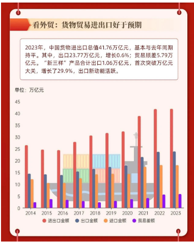 3、从拉动经济的三驾马车看,2023年,最终消费支出、资本形成总额、货物和服务净出口分别拉动经济增长4.3、1.5、-0.6个百分点,对经济增长的贡献率分别是82.5%、28.9%、-11.4%,内需对经济增长的贡献率达到111.4%;