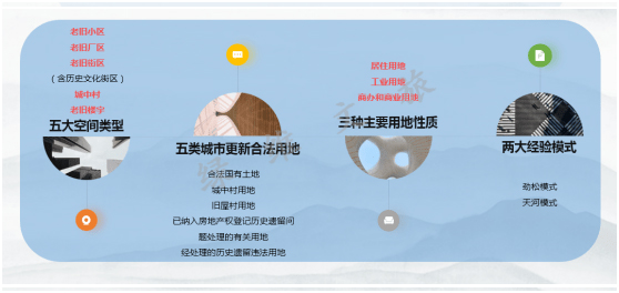 城市更新大致分为拆除重建类、有机更新类和综合整治类三大类,实际上都需要做到整治、盘活、提升、改善、升级和保护六个方面。